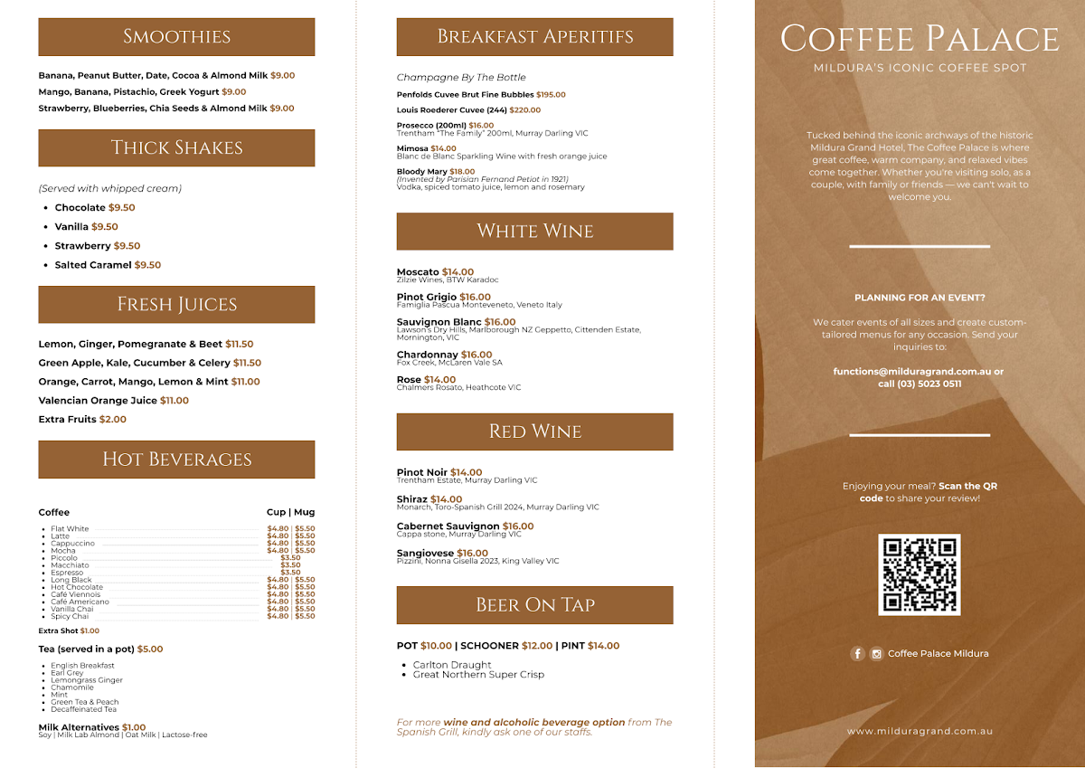 Welcome to Coffee Palace, a charming café nestled at 16 Langtree Ave, Mildura. This inviting establishment offers a delectable menu featuring a variety of delightful dishes for breakfast and lunch. The star attractions include the classic 2 Eggs Your Way, deliciously complemented by your choice of toast, and the indulgent Pain Perdu French toast topped with smoky bacon and maple syrup.